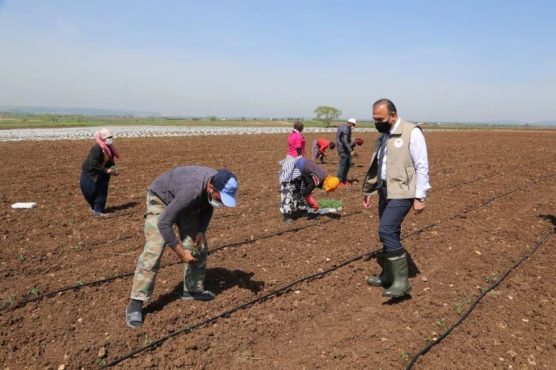 2021 yılında üretim sezonunun başlamasıyla birlikte mevsimlik tarım işçileri Bursa’ya giriş yaptı. Karacabey Fevzipaşa Mahallesi’nde Onur Demir’e ait salçalık domates tarlasında dikim yapan mevsimlik tarım işçilerini İl Müdürü Hamit Aygül, İl Müdür Yardımcısı Erdoğan Ceylan, Karacabey İlçe Müdürü Davut Aytek, Koordinasyon ve Tarımsal Veriler Şube Müdürü Esra Uzun teknik personel ve sosyolog ile birlikte ziyaret etti.