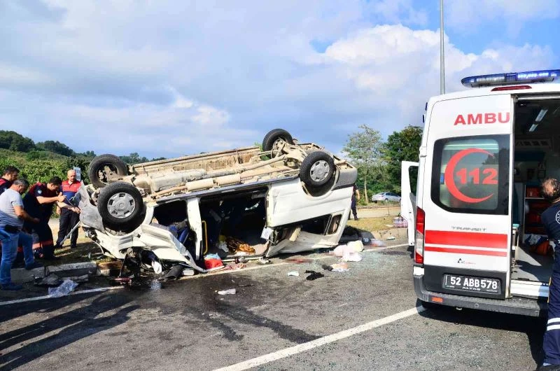 Kaza, Samsun-Ordu yolu üzeri Çaybaşı sapağında sabah saatlerinde meydana geldi. Edinilen bilgiye göre, fındık hasadı için gelen işçileri taşıyan ve Ünye istikametinden Akçay istikametine giden Sedat Koyun idaresindeki 05 ABG 465 plakalı minibüs ile Ahmet Taş yönetimindeki 52 ES 027 plakalı hafif ticari araç çarpıştı. Çarpışmanın etkisi ile minibüs takla atarken, hafif ticari araç ise refüje çıkarak durabildi.