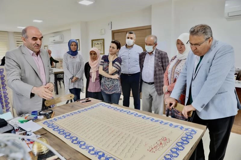 Yunusemre Belediye Başkanı Dr. Mehmet Çerçi ve beraberindeki heyet, kentin en güzel ibadethanelerinden biri olacak Yunusemre Meydan Camii’nin duvarlarını süsleyecek hat tablolarını inceledi. Yunus Emre Kültür Parkı’nda bulunan Türk İslam Geleneksel El Sanatları Merkezi’nde bulunan eserler, beğeni topladı.