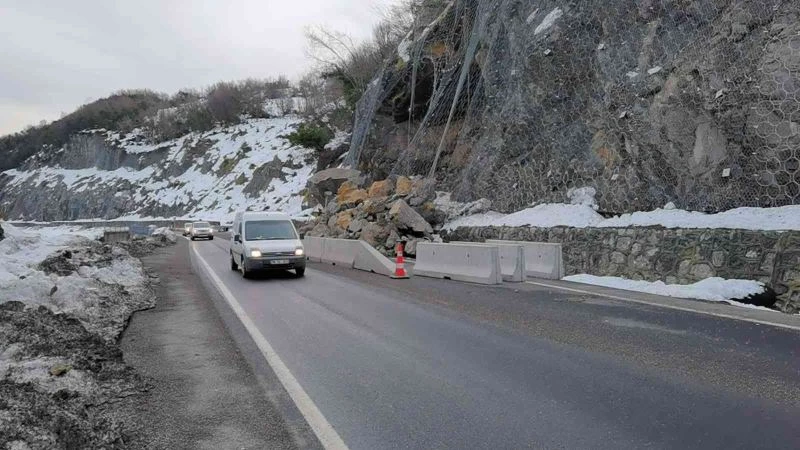 Zonguldak-İstanbul kara yolunda gece saatlerinde meydana gelen heyelan ekipler tarafından kaldırılarak yol trafiğe açıldı. Öte yandan aynı güzergahta geçen hafta yaşanan heyelanın ardından dev kayalar yoldan temizlenirken ulaşım ise halen tek şeritten sağlanıyor.
