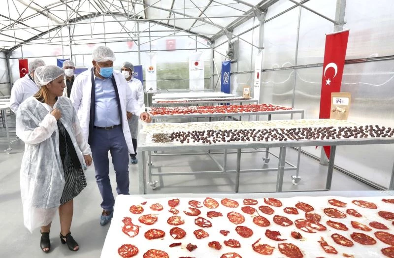 Meryem Kadın Kooperatifi’nin 135 sürekli çalışanı var ama yaklaşık 200 kadına istihdam sağlayan bir kooperatif. Kurutma tesisi de aynı kooperatif çatısı altında faaliyet gösteren ve yaklaşık 100 bin dolara mal olan bir yer. Burada da 30 kadınımıza istihdam sağlanacak” diye konuştu.