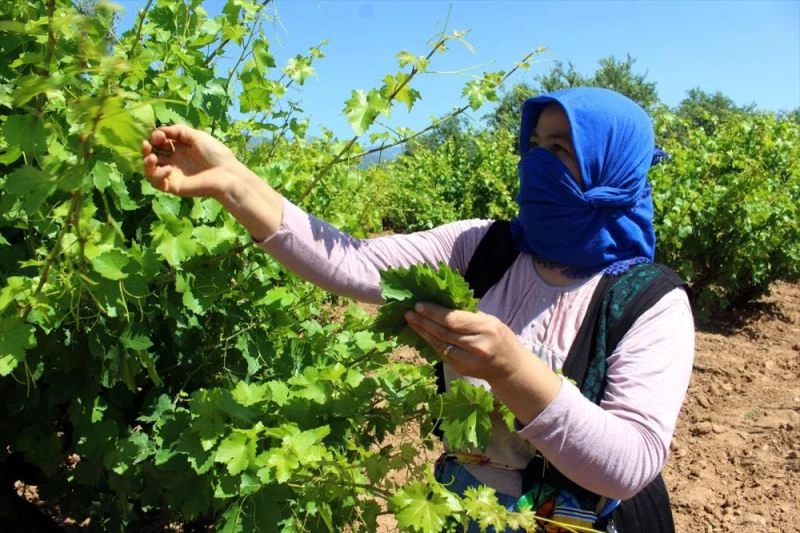 HATAY (AA) - HILMI TUNAHAN KARAKAYA - Üzüm üretimiyle adindan söz ettiren Hatay'in Hassa ilçesinde, baglardan toplanan yapraklar fiyatiyla önemli gelir kapisi olusturuyor.