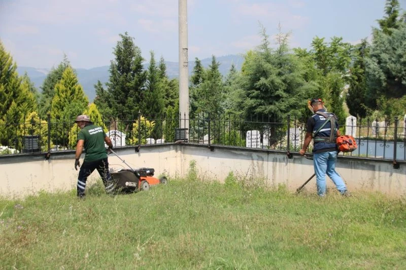 Derince Belediyesi ekipleri Kurban Bayramı öncesi mezarlıklarda temizlik ve bakım çalışmalarını gerçekleştiriyor.