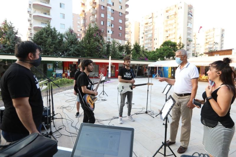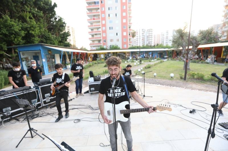 Mezitli Belediyesi çalışanları tarafından oluşturulan müzik grubu Rock Denetim, sanat çarşısında konser verdi.