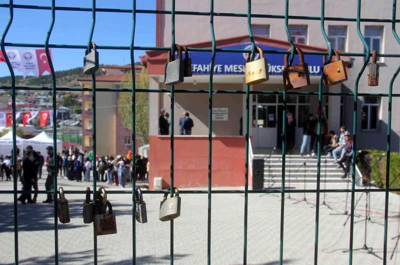Mezun olan öğrenciler öğrenim gördükleri süreçte dolaplarında kullandıkları kilitleri mezun olup Refahiye’den ayrılmadan önce okulun demir kapısına takıp ilçeden ayrılıyor.