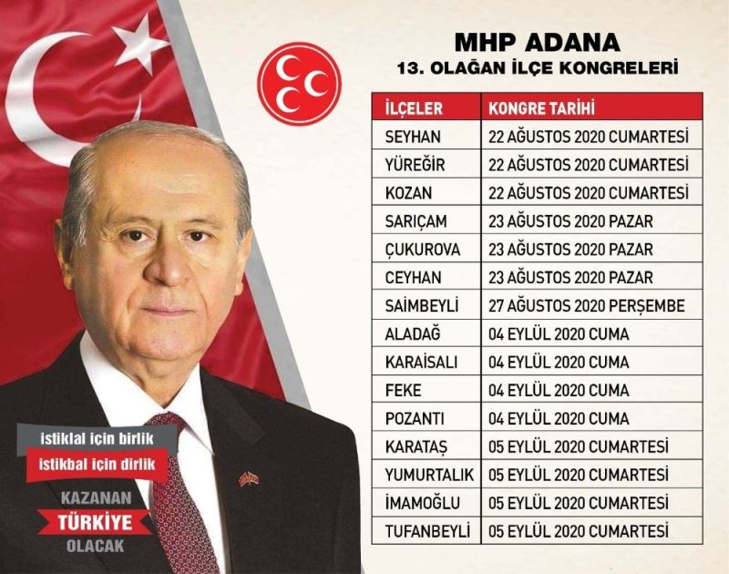 MHP Adana’da ilçelerin kongre takvimi şöyle: