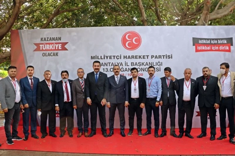 MHP Antalya İl Başkanı Hilmi Durgun’un tek aday olduğu kongrede MHP Genel Başkanı Devlet Bahçeli’nin gönderdiği mesaj, İzzet Ulvi Yönter tarafından okundu. Kongrede bir konuşma yapan İl Başkanı Durgun, tüm teşkilatlarda düzenlenecek kongrelerin ardından 14 Mart 2021 tarihinde büyük kurultayın her zamankinden daha coşkulu, daha birlik ve bütünlük içinde hazırlanılacağını kaydetti. Büyük kongrenin tarihine işaret eden Durgun, “Bu kurultayla yetki alacak merkez kadrolarımız, partimizi cumhuriyetimizin bir asrını dolduracağı 2023 yılına taşıyacak kadrolar olacaktır. Diğer yandan, büyük kurultay, önümüzdeki yıl yüz beşinci sene-i devriyesini idrak edeceğimiz Çanakkale ruhuna da bir çağrıdır. Nasıl ki Çanakkale’de rütbeler, makamlar, unvanlar ve hatta isimler anlamını yitirmiş, her fert önüne ardına bakmadan cepheye koşmuşsa, 2023 yılına giden yolda büyük kurultaya ve sonrasındaki çetin mücadeleye aynı şuur ve vakarla iştirak etmek her birimiz için ülkücü bir erdem olduğu kadar kutlu bir ödevdir de” dedi.