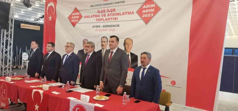 2023 seçimleri kapsamında “Adım Adım 2023, İlçe İlçe Anlatma ve Aydınlatma Toplantılarına" başlayan Milliyetçi Hareket Partisi (MHP), il il gezmeye devam ediyor. MHP Genel Merkezi heyeti, her ilde yapılan toplantılar kapsamında Aydın’a geldi. Milliyetçi Hareket Partisi (MHP) Genel Başkanı Devlet Bahçeli’nin talimatı ile başlayan “Adım Adım 2023” programları kapsamında il ve ilçe teşkilatları çalışmalarına aralıksız devam ederken ilk toplantı Germencik’te gerçekleştirildi. Yoğun bir katılımın olduğu toplantıda birlik ve beraberlik vurgusu yapılırken, 2023 seçimlerine doğru yapılacak çalışmalar ve projeler konuşuldu.