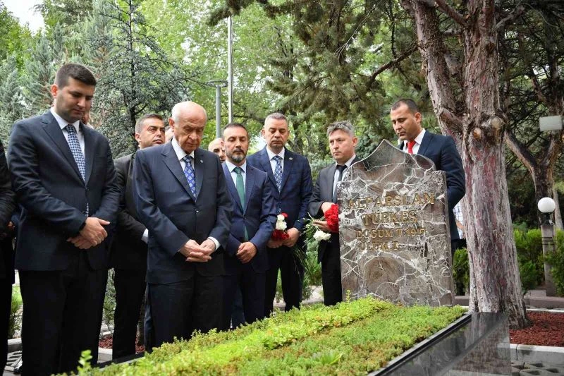 Bahçeli, bayram namazının ardından Alparslan Türkeş’in Beştepe’de bulunan kabrini ziyaret etti. Burada kendisini karşılayan partililerle tek tek bayramlaşan Bahçeli ve beraberindekiler daha sonra Türkeş’in kabri başına geldi. Kur’an-ı Kerim okunmasının ardından Bahçeli, Türkeş’in kabrine kırmızı karanfiller bıraktı, bakır bir ibrikle kabri suladı.