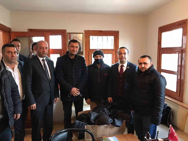 MHP Sivas Milletvekili Ahmet Özyürek ihtiyaç sahibi çocuklara teslim edilmek üzere mahalle muhtarlıklarına kışlık mont ve bot dağıttı.