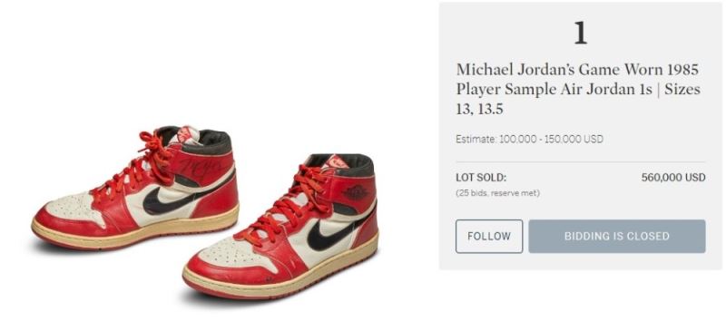 Efsane basketbolcu Michael Jordan’ın NBA’de Chicago Bulls ile ilk sezonunda giydiği ayakkabılar açık arttırma ile satışa çıktı. Müzayede şirketi Sothebys’ın internet sitesinden yapılan açık arttırmada ayakkabıların 100 ile 150 bin Dolar değer alması beklenirken, rekor fiyata satıldı. Jordan’ın 1985 yılında giydiği imzalı ayakkabılar 560 bin Dolar’a alıcı buldu.
