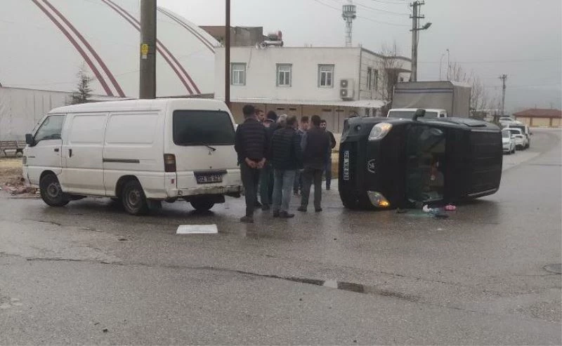 Midibüs ile çarpışan hafif ticari araç devrildi: 1 yaralı
