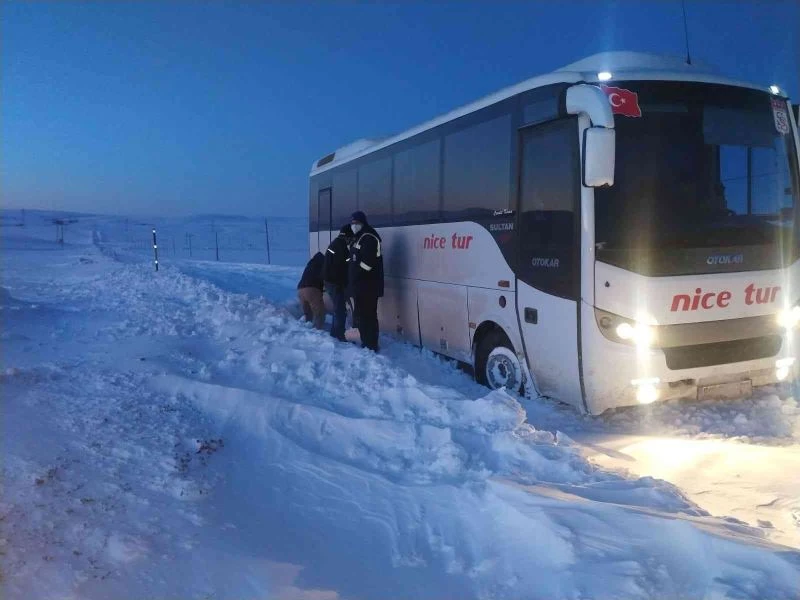 Sivas’ın Gürün ilçesinde etkili olan yoğun kar yağışı nedeniyle ulaşımda aksamalar yaşanıyor. Gürün-Sivas yolu Yılan Höyük mevkiinde servis midibüsleri yoğun kar nedeniyle yolda mahsur kaldı. Midibüsler karayolları ekiplerinin bir saatlik çalışmaları sonucu kurtarıldı. Mahsur kalanlar ve araçları ilçe merkezine taşındı.