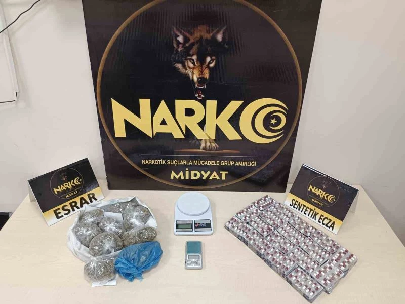 Alınan bilgilere göre, Midyat İlçe Emniyet Müdürlüğü Narkotik Suçlarla Mücadele Grup Amirliği ekiplerince, Midyat Cumhuriyet Başsavcılığının talimatları çerçevesinde, uyuşturucu madde ticareti yapan şüphelilere yönelik yapılan çalışmalarda bir adreste yapılan operasyonda, 952 adet uyuşturucu hap, 10 poşet halinde 482 gram esrar maddesi ve uyuşturucu madde ticaretinde kullanılan 2 adet hassas terazi ele geçirildi.