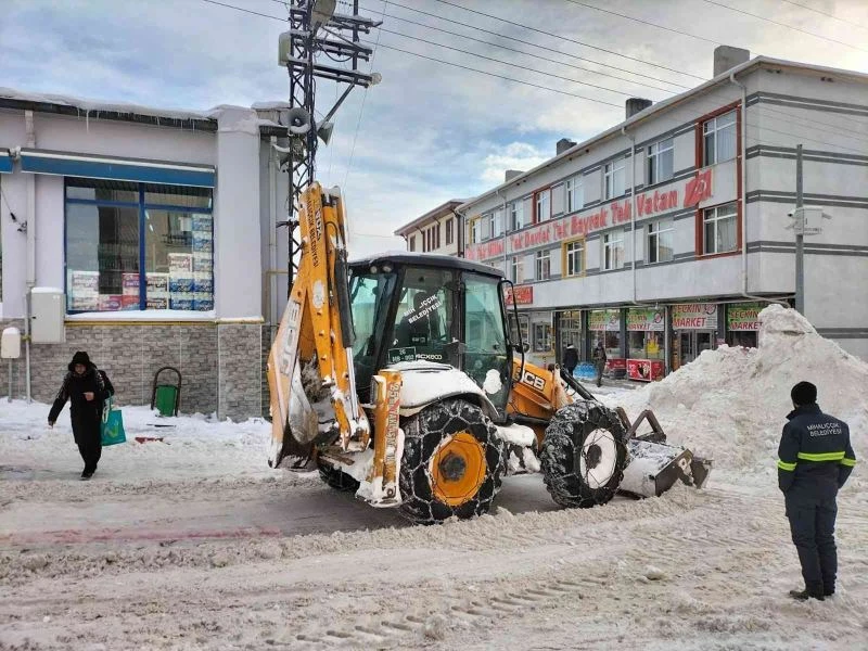 Yoğun kar yağışıyla beyaza bürünen Mihalıççık’ta ekipler yolların kapanmaması için küreme çalışmaları yapıyor.
