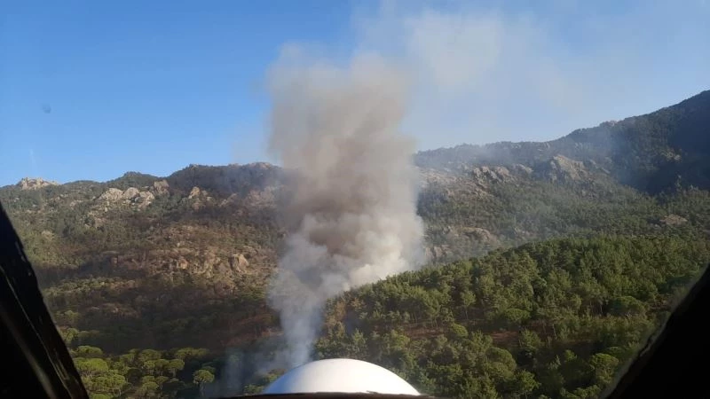 Muğla’nın Milas ilçesinde çıkan orman yangınına ekiplerin havadan ve karadan müdahalesi sürüyor.