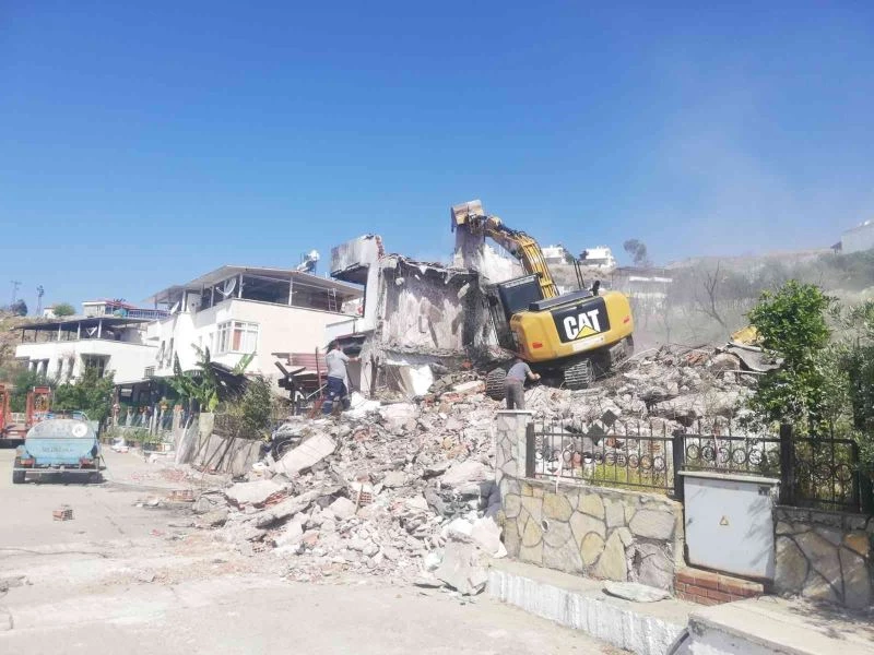 Milas’ta yangında ağır hasar gören yapılar yıkılıyor