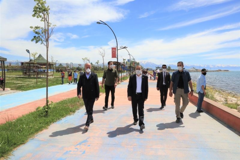Arvas, daha sonra Van’ın en büyük parkı olan ve önümüzdeki günlerde açılışı yapılacak İskele Sahil Bandı 2. Etabı kısmını gezdi. Gerek yapılan peyzajı ve gerekse kullanılan malzeme bakımından göz kamaştıran parkta ayrıca Van simgelerinden olan Van balığı (İnci Kefali) ve Van kedisi maketleri bulunuyor. Yakın zamanda temeli atılacak olan ve 717 bin 212 metrekare alanı ile bölgenin en büyük ‘Millet Bahçesi’ olma özelliğine sahip ‘Tuşba Millet Bahçesi’ proje ile birleşmesiyle Feribot İskelesi’nden Van Yüzüncü Yıl Üniversitesine kadar yarım hilal şeklinde Van Gölü ile bütünleşmiş bir yeşil kuşak oluşturulmuş olacak.