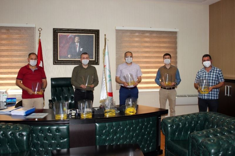 Erdemli İlçe Milli Eğitim Müdürü Yusuf Açıkyörük, milli eğitim çalışanları tarafından üretilen 150 adet siperlik yüz maskesini İlçe Sağlık Müdürlüğü ile Erdemli Devlet Hastanesi Başhekimliğine teslim ettiklerini söyledi.