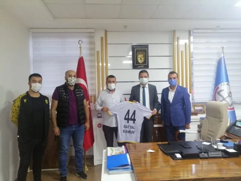 Malatyaspor Derebeyleri Taraftarlar Derneği Başkanı Ender Kaya, Malatya’ya yeni atanan Milli Eğitim Müdürü Battal Kanbay’ı ziyaret ederek 44 numaralı forma hediye etti.