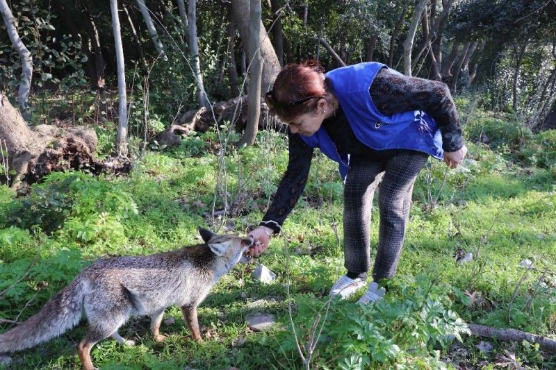 Aydın’ın Kuşadası ilçesinde yaşayan Figen Türker, Dilek Yarımadası Büyük Menderes Deltası Milli Parkı, Kavaklı burnunda karşılaştığı tilkiyi eliyle beslerken, o anları eşi cep telefonu ile kaydetti.