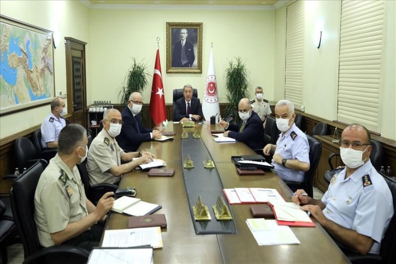 Milli Savunma Bakanı Hulusi Akar başkanlığında Genelkurmay Başkanı Orgeneral Yaşar Güler, Kara Kuvvetleri Komutanı Orgeneral Ümit Dündar, Hava Kuvvetleri Komutanı Orgeneral Hasan Küçükakyüz ve Deniz Kuvvetleri Komutanı Oramiral Adnan Özbal ile Bakan Yardımcıları Yunus Emre Karaosmanoğlu ve Alpaslan Kavaklıoğlu’nun da katılımıyla video telekonferans toplantısı gerçekleştirildi. Haftalık olağan toplantıda Libya’daki Savunma Güvenlik İşbirliği ve Eğitim Yardım Danışma Komutanlığı, Afganistan’daki Türk Görev Kuvveti Komutanı, NATO Karargâhı’ndaki Türk Askeri Temsil Heyeti Başkanı, KKTC’deki Kıbrıs Türk Barış Kuvvetleri Komutanı’nın yanı sıra ordu komutanları, Muharip Hava Kuvveti ve Donanma Komutanı devam eden faaliyetler ve sahadaki son duruma ilişkin bilgi verdi.