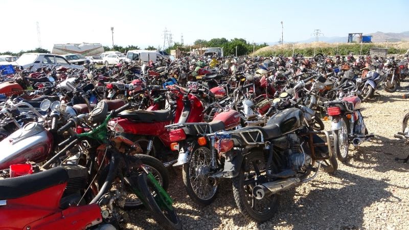 Adana’nın Kozan ilçesinde haciz ve trafik cezası borçları gibi çeşitli nedenlerle yediemin otoparkına çekilen 800 motosiklet ve otomobil bulunduğu yerde çürüyor.