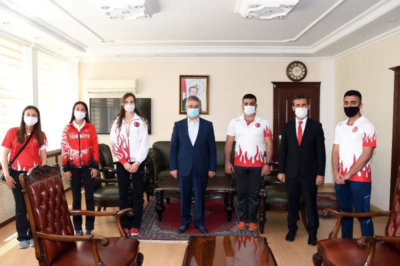 Çeşitli branşlardan uluslararası arenada birçok başarıya imza atan milli sporcular Gençlik Spor İl Müdürü Fikret Keleş’le birlikte Gençlik Haftası etkinlikleri kapsamında Vali Aykut Pekmez’i makamında ziyaret ederek bir buket çiçek takdim etti.