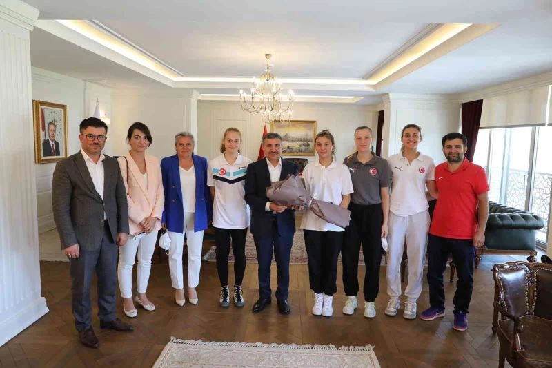 Düzce Valisi Cevdet Atay, 17 Yaş Altı Basketbol Milli Takımı’na seçilen Semanur Demir ve Melikenur Gürbüz, Saliha Mandıracı ve Rana Uçar,’ı makamında ağırladı.