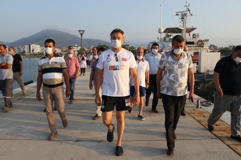Bu tür organizasyonlara dev maraton dendiğin kaydeden Tüzmen, “Bunun dünyada örnekleri çok az. 6 kişiyle yaptığımız çalışmada herkes 1’er saat yüzecek. Toplamda herhalde hava şartlarına göre değişebilir ama 8 saate yakın bir yüzüş yapacağız. 90 kilometre olarak direk gördüğümüz yer 110-120 kilometreye çıkabilir. Çünkü akıntılardan dolayı yönler değişebilir. Bugün burada denizde hiçbir petrol veya doğalgaz platformu göremiyorsunuz. Ama emin olun ki ilerde şunu görecek ki bizler 1,5 milyar varil petrol rezervlerini ve 3 trilyon küp doğalgaz rezervlerinin üzerinde yüzeceğiz. Yani bu korkunç bir zenginlik. Bu zenginlik Türkiye’ye 570 yıl yetebilecek bir zenginlik. Akdeniz aslında bizim gölümüz. Bizim gölümüzde biz karşı tarafta bizi bekleyen KKTC’ye gideceğiz. Burada şehitlerimizi, gazilerimizi yad edeceğiz” diye konuştu.