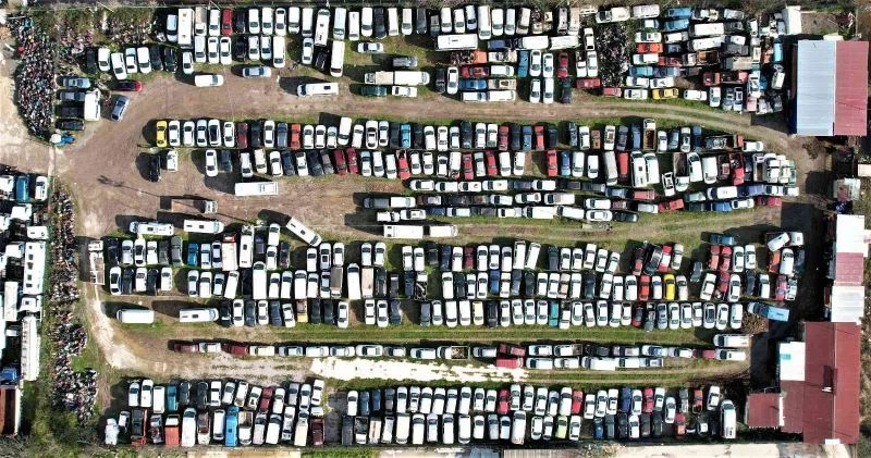 KOCAELİ – Kocaeli’de trafikten men edilen yüzlerce araç yediemin otoparkında çürümeye terk edildi. Değeri milyonları bulan araçlar havadan görüntülendi.