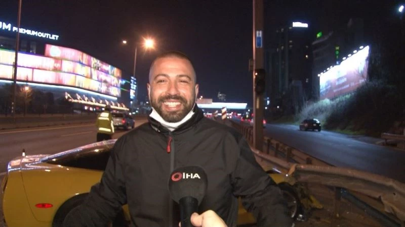 Lüks Ferrari aracıyla kaza yapan sürücü, "Yağmur yağışı sonrası ayağımızın altından gitti araba, aşırı hız yoktu, güçlü araba olunca kaydı. Yanımda oturan arkadaşım hafif yaralandı, hastaneye kaldırdılar. Milyonluk arabam yerle bir oldu. Ne yapayım ben, her gün her an sürekli haberlerdeyiz” diye konuştu.