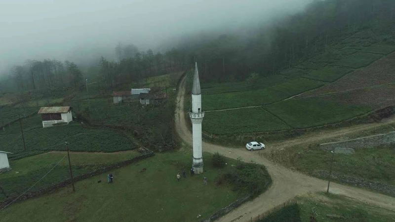 Trabzon’un Of ilçesine bağlı Bölümlü Mahallesinde 23 yıl önceki selde yıkılan camiden geriye kalan sadece minaresi oldu.