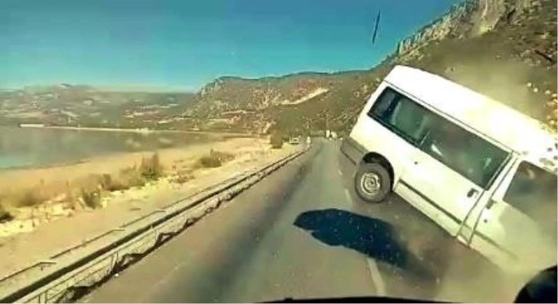 Kaza anı, kamyoneti takip eden araç kamerasına saniye saniye yansıdı. Düz yolda bir anda kamyonetin bulunduğu şeride geçen minibüsle kafa kafaya gelen kamyonetin çarpışması anbean kayıt altına alındı.
