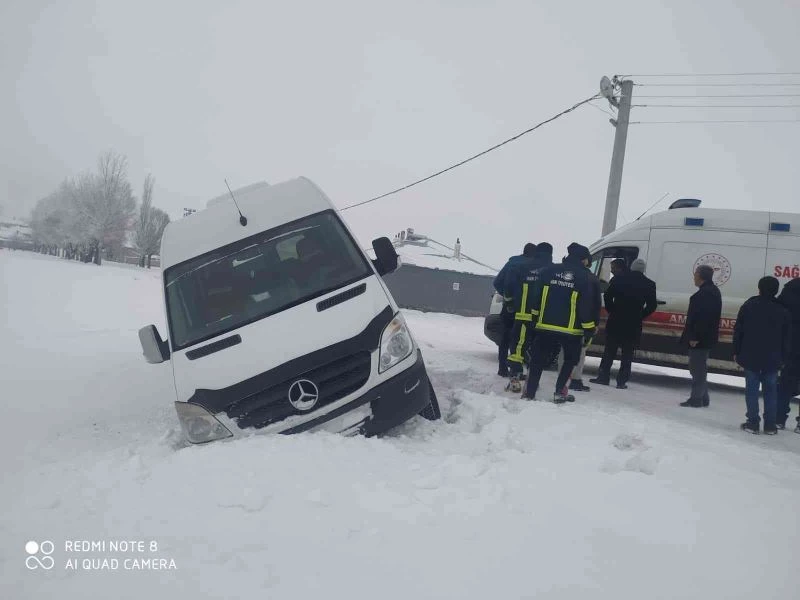 Van’ın Özalp ilçesinde kar yağışından dolayı kontrolden çıkan minibüs kara saplanırken, 1 kişi de yaralandı.