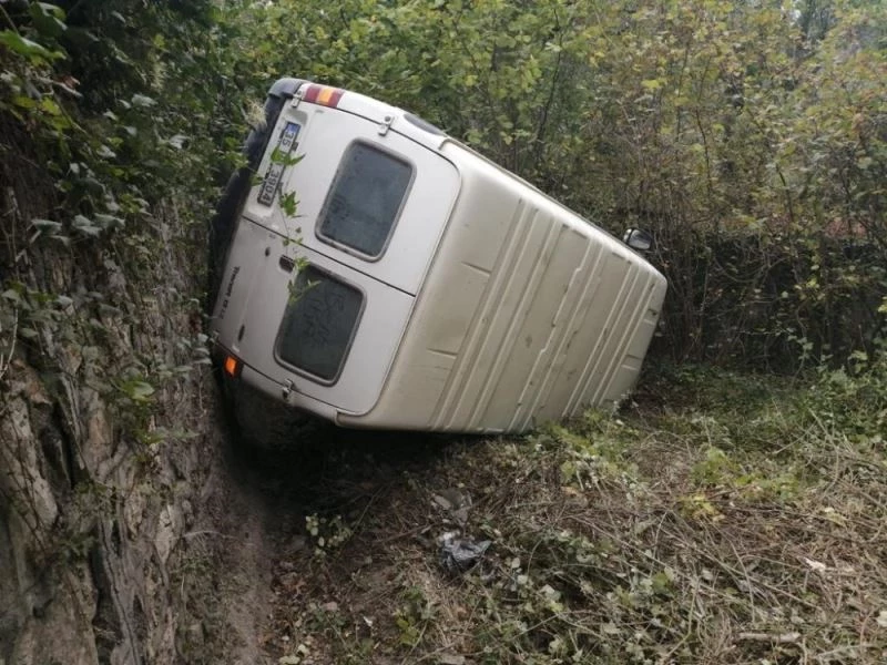 Karabük’te, şarampole uçan minibüsün sürücüsü yaralandı.