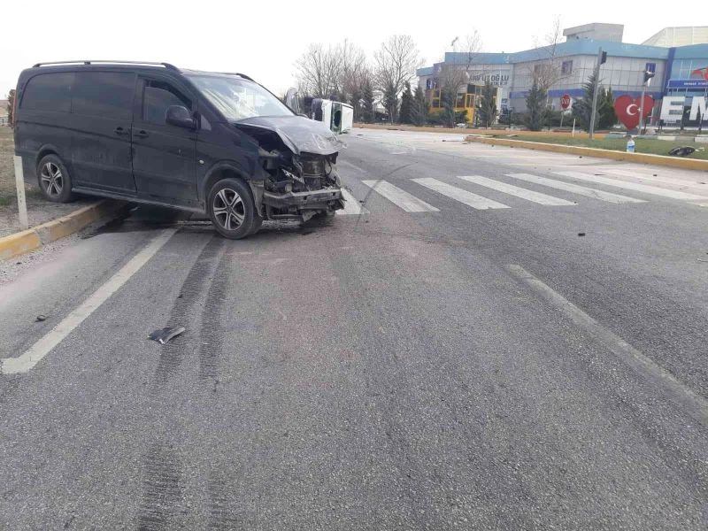 Minibüsle çarpışan kamyonet devrildi, 1 kişi yaralandı