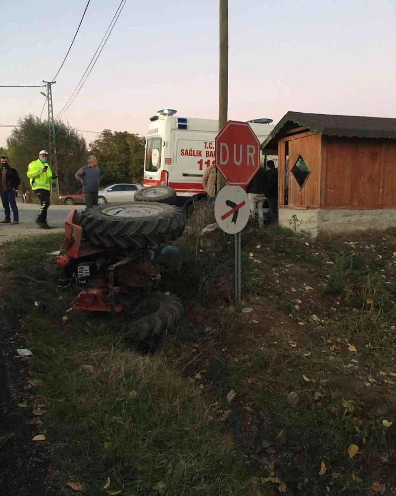 Minibüsle çarpışan traktör şarampole devrildi: 1 ölü