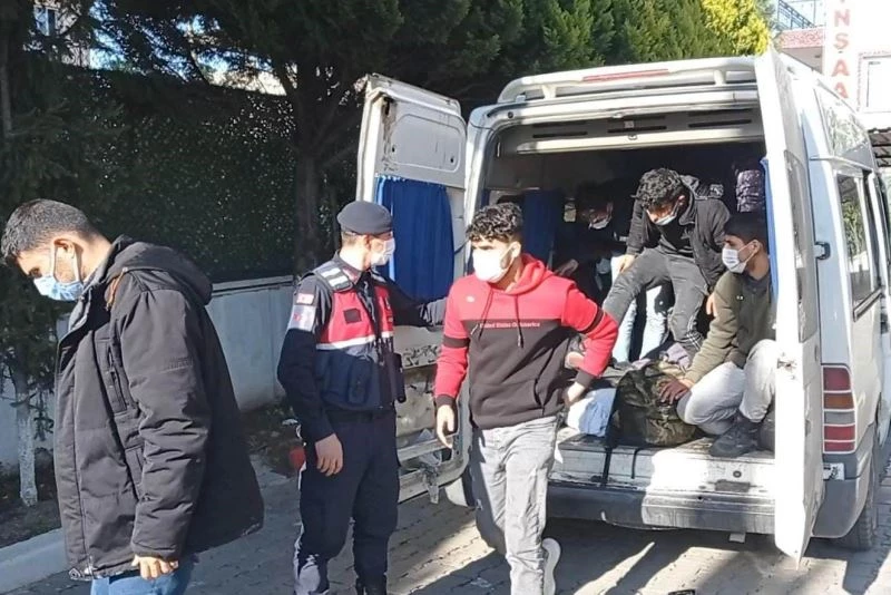 İzmir’de yol kontrolü yapan jandarma ekipleri, şüphe üzerine durdurdukları bir minibüsteki 28 kaçak göçmeni organizatörlük yapan şoför ile birlikte yakaladı.
