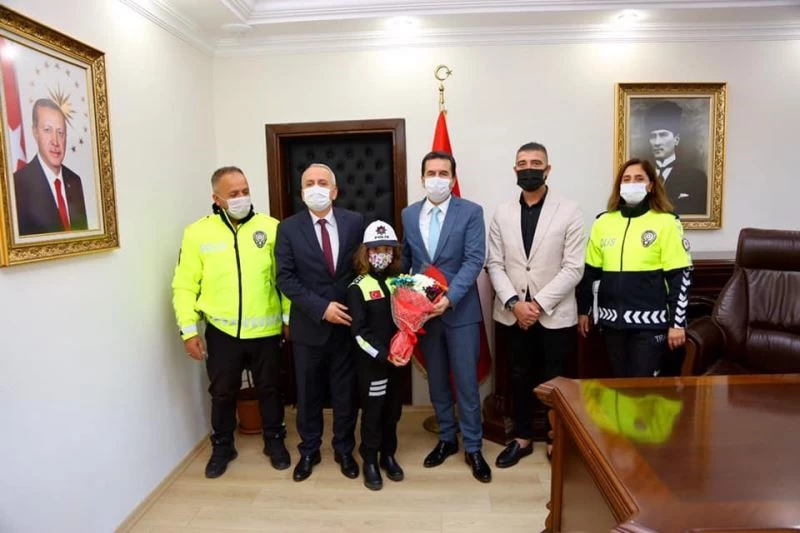 Ünye İlçe Emniyet Müdürü Mustafa Avni Aktürk tarafından trafik polisi kıyafeti giydirildikten sonra hayalinin gerçekleştirilmesinden dolayı teşekkür için Ünye Kaymakamı Ayhan Işık’ı ziyaret eden minik Aybüke, yaşadığı mutluluğu ise herkesle paylaştı.