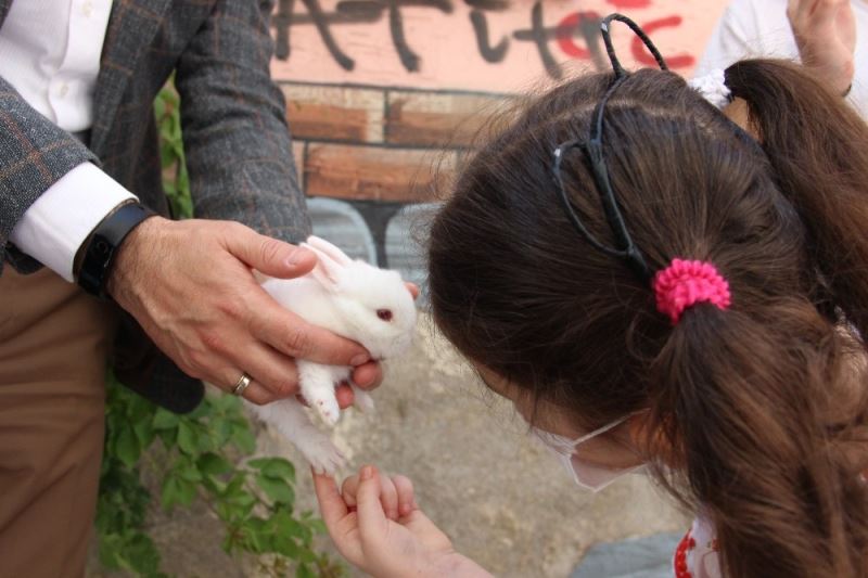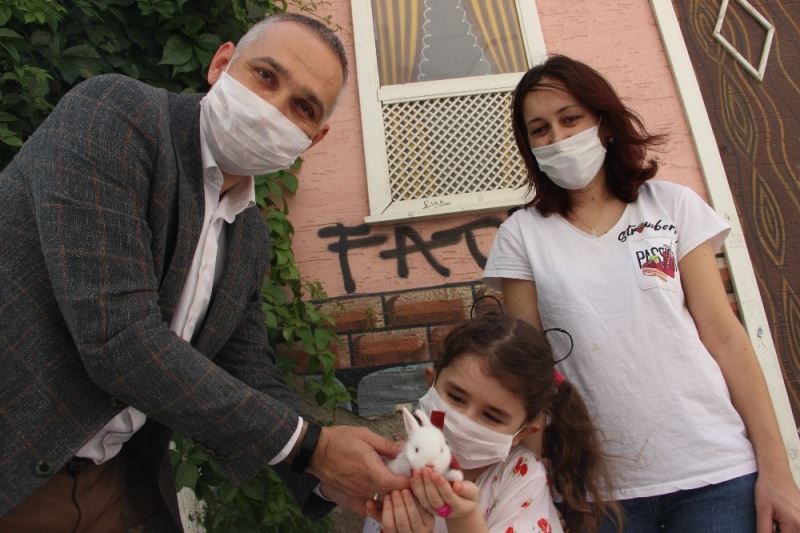 MANİSA (İHA) – Cumhurbaşkanı Recep Tayyip Erdoğan’dan Cumhurbaşkanlığı İletişim Merkezi (CİMER) aracılığıyla yavru bir tavşan isteyen 6 yaşındaki Cemre Basatemur’un hayali gerçek oldu. Kendisine hediye edilen tavşana Boncuk ismini veren Cemre, büyük mutluluk yaşadı.