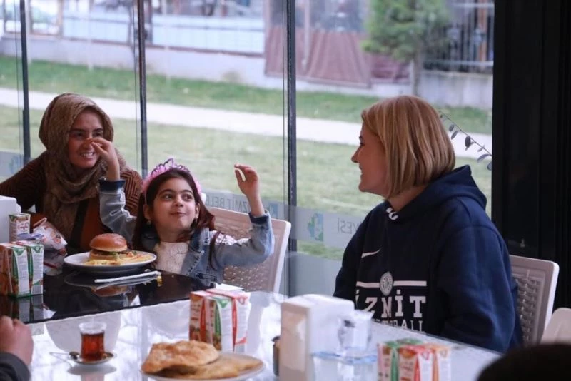 Depremin yaralarını sarmak amacıyla çalışmalarını sürdüren İzmit Belediye Başkanı Fatma Kaplan Hürriyet, deprem bölgesinden İzmit’e gelen vatandaşlarla İzmit Belediyesi Sosyal Tesisi Gülümse Kafe’de bir araya geldi. Başkan Hürriyet ayrıca, minik Ecrin’e doğum günü sürprizi yaptı. 7’nci yaşına İzmit’te giren ve doğum günü sürprizi yapılan Ecrin, pastasını Başkan Hürriyet ile beraber kesti. Sürprizden dolayı çok mutlu olan Ecrin ve ailesi, İzmit Belediye Başkanı Fatma Kaplan Hürriyet’e teşekkür etti.