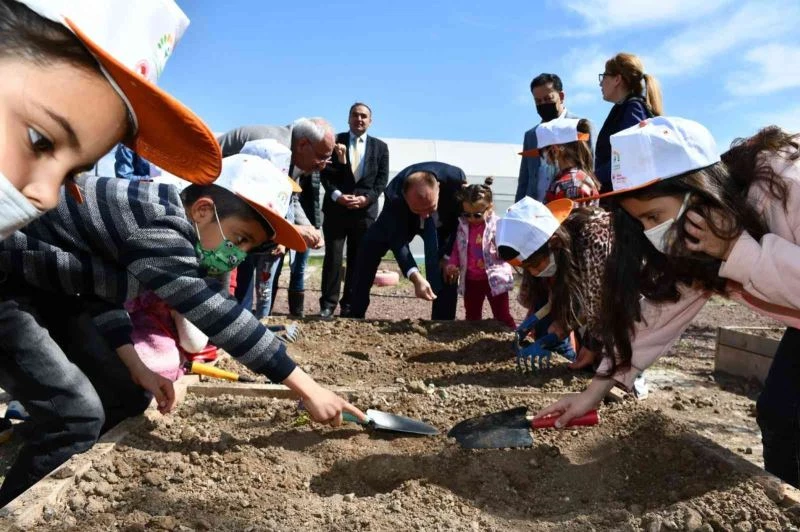 Kırıkkale’de öğrenciler, Obaköy Çocuk Tarım Akademisi’nde sebze ve meyve tohumlarını toprakla buluşturdu.