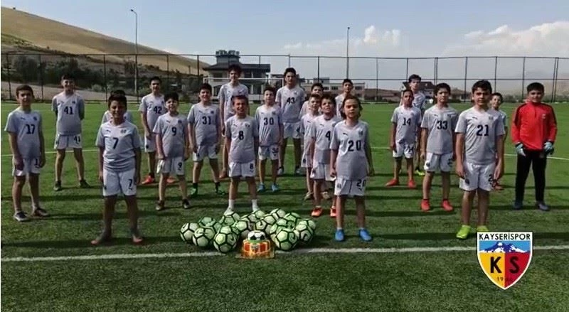 Minik futbolcular, ayrıca kendilerine Kayserispor logosu bulunan pasta gönderen HES Kablo Kayserispor Kulübü Başkanı Berna Gözbaşı’na da tezahürat yaparak teşekkür etti.
