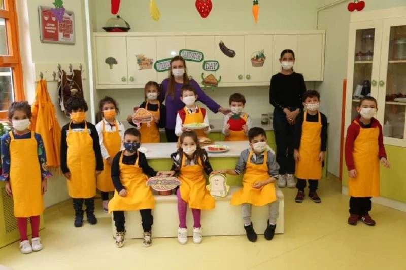 Gaziantep Kolej Vakfı Özel Anaokulu öğrencileri İngilizce dersinde düzenlenen bir etkinlikle sağlıklı beslenme ile ilgili bilgiler alıp aşçı kıyafetiyle girdikleri mutfakta Kovid 19 tedbirleri kapsamında alınan önlemlere uyarak kendi sandviçlerini hazırlayıp hem eğlendiler hem öğrendiler.