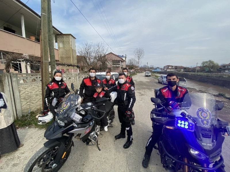 DÜZCE (İHA) – Düzce’de bir ihbar üzerine gittikleri mahallede polis kıyafeti ile dışarı çıkan ve olaya müdahil olmak için giden Muhammet Emin, polis ekiplerince evine bırakılmıştı. 4,5 yaşındaki Muhammet Emin’i bu sefer giydiği kıyafetlerdeki Yunus polisleri ziyaret etti. Minik Muhammet bu sefer motora bindi siren çalıp polis ağabeyleri ile hatıra fotoğrafı çektirdi.