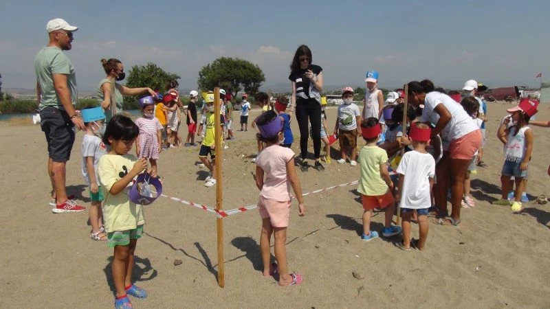 Manavgat’ta özel bir okulda eğitim gören 5 yaşındaki anasınıfı öğrencileri, caretta carettalar hakkında bilgi alırken, sahilde bulunan yuvalama sahalarının etrafını şeritle çevirerek korudu.
