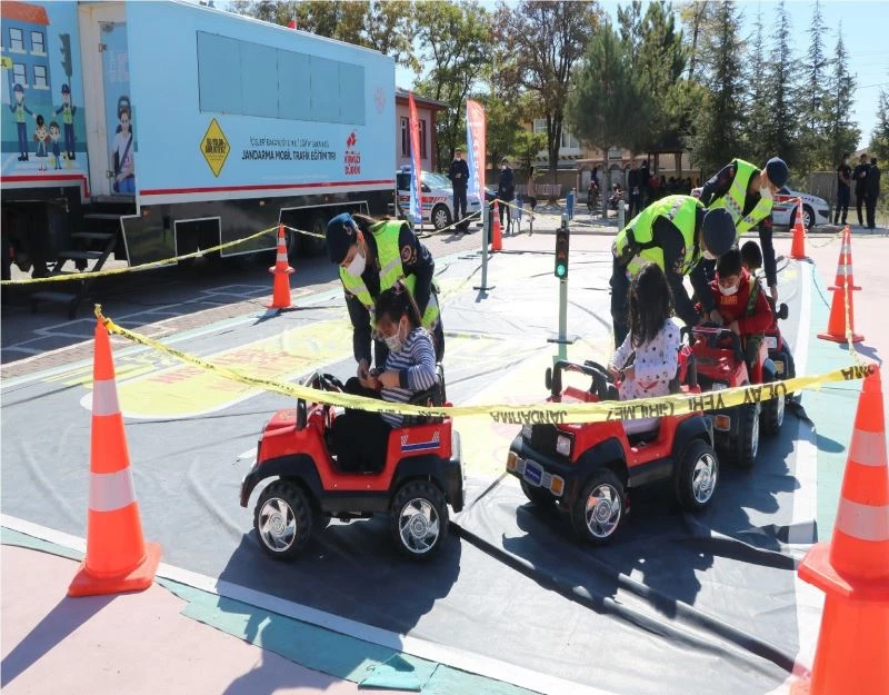 Nevşehir İl Jandarma Komutanlığınca kentte minik öğrencilere ’Mobil Trafik Eğitim Tırı’ ile uygulamalı trafik eğitimi verildi.