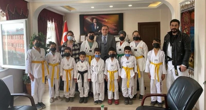 Çaldıran 2018 Gençlik Spor Kulübü taekwondo sporcuları Kaymakam Hasan Hüsnü Türker’i ziyaret etti.