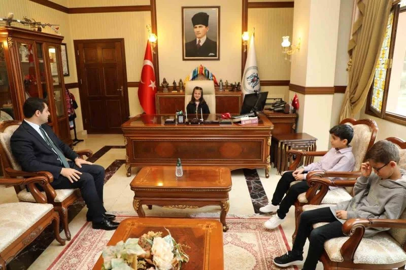 Valilik makamını temsili olarak devralan 4’üncü sınıf öğrencisi İkranur Sazlı, ilk olarak tüm çocukların 23 Nisan Ulusal Egemenlik ve Çocuk Bayramı’nı kutlayarak, "Bu güzel bayramı biz çocuklara armağan eden Atamızı saygıyla anıyorum" dedi.